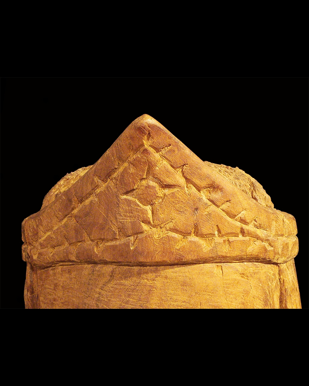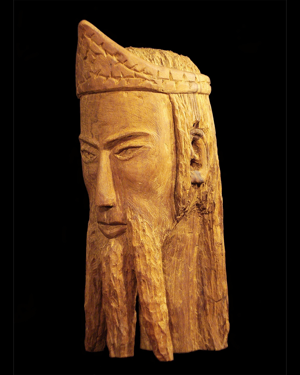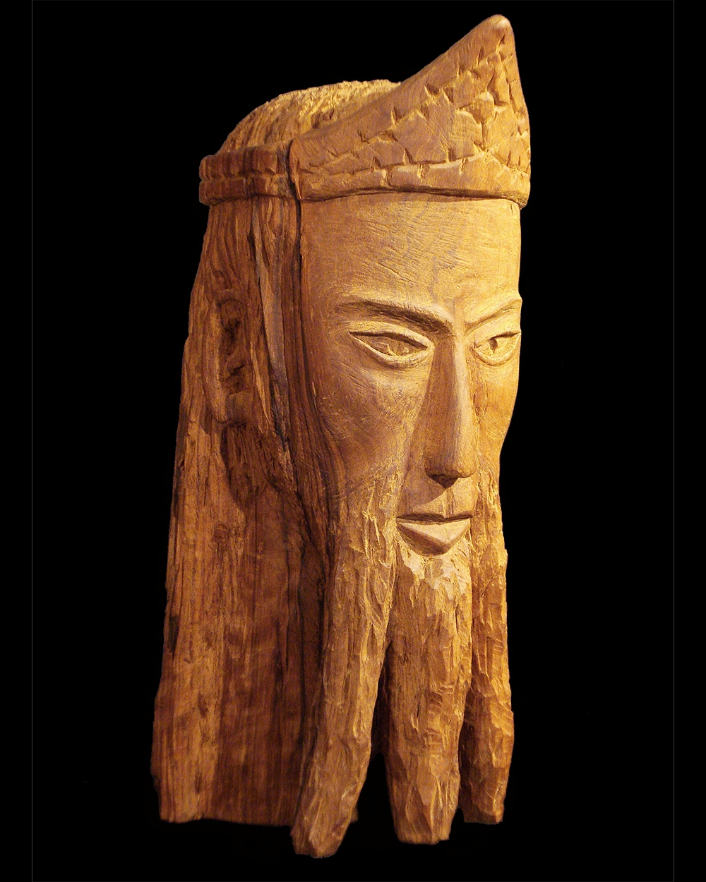 Il volto sospeso poggia su di una barba trina, simbolo della manifestazione oggettiva della Trinità. Il copricapo ci ricorda una corona, ma per la sua conquista non dimentichiamo che occorre il dolore.
